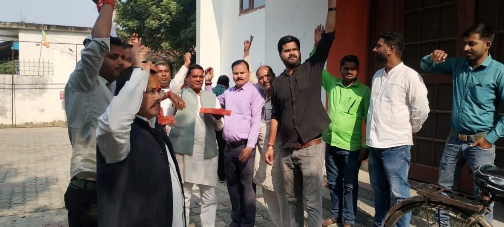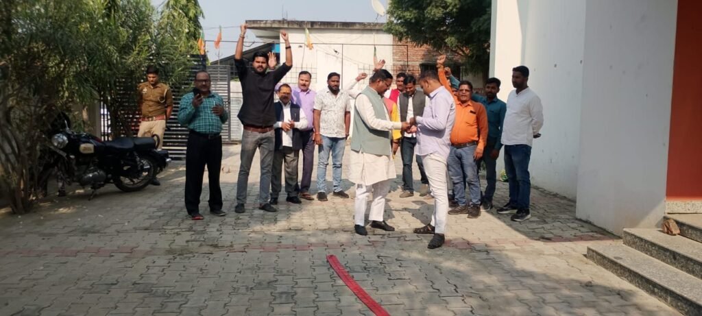 बिहार में प्रचंड जीत के बाद महराजगंज BJP कार्यालय में जश्न, विधायक जयमंगल कनौजिया के नेतृत्व में पटाखे और मिठाइयाँ बाँटी गईं