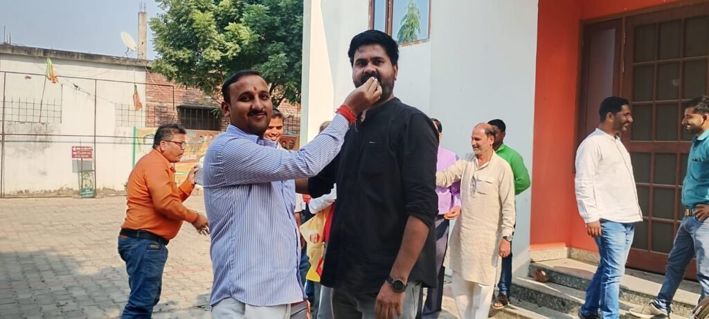 कार्यालय में मौजूद कार्यकर्ताओं ने ढोल-नगाड़ों की थाप पर नारे लगाए और माहौल उत्सव जैसा बना रहा। कई स्थानों पर कार्यकर्ताओं ने जरूरतमंद लोगों में मिठाइयाँ बाँटकर जीत की खुशी को सबके साथ साझा किया।