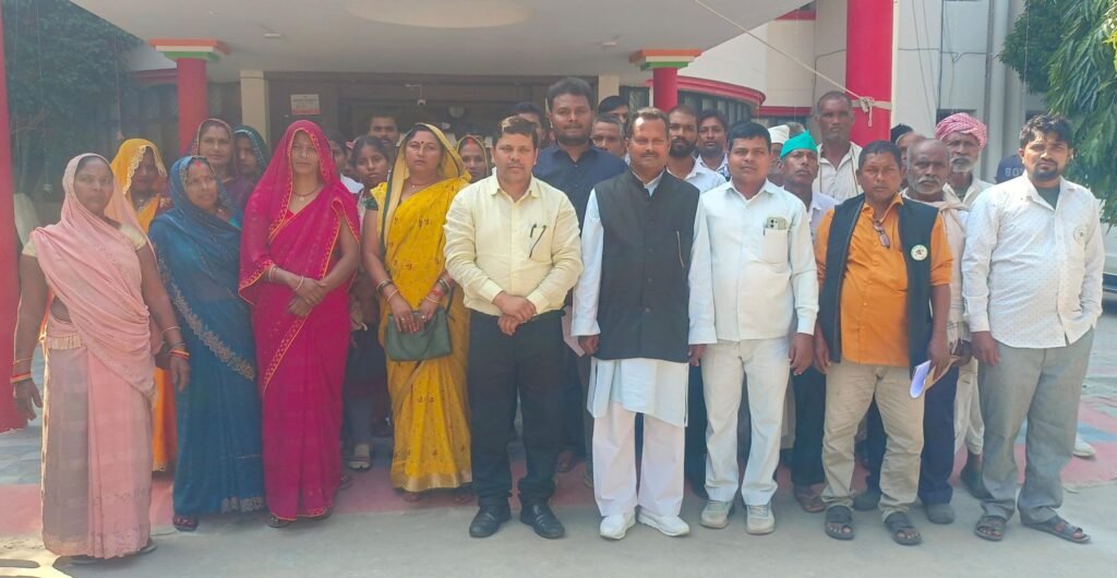 फोटो कैप्शन: जिलाधिकारी कार्यालय पर प्रदर्शन करते ग्रामीण।