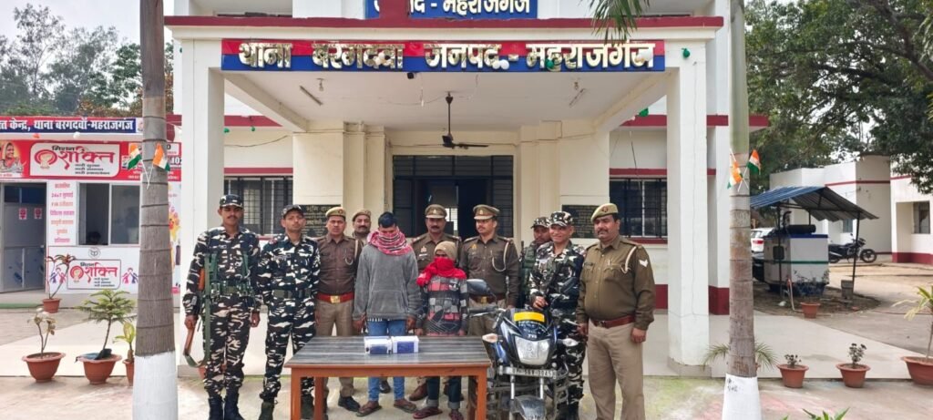 अपर पुलिस अधीक्षक महाराजगंज श्री सिद्धार्थ के मार्गदर्शन तथा क्षेत्राधिकारी नौतनवा श्री अंकुर गौतम के पर्यवेक्षण में दिनांक 02 फरवरी 2026 को समय लगभग 19:34 बजे थाना बरगदवा क्षेत्र अंतर्गत सीमा स्तम्भ संख्या 509/1, बैरियर चेकपोस्ट बदह, ग्राम चकरार के पास चेकिंग के दौरान मुखबिर की सूचना पर दो अभियुक्तों को गिरफ्तार किया गया।