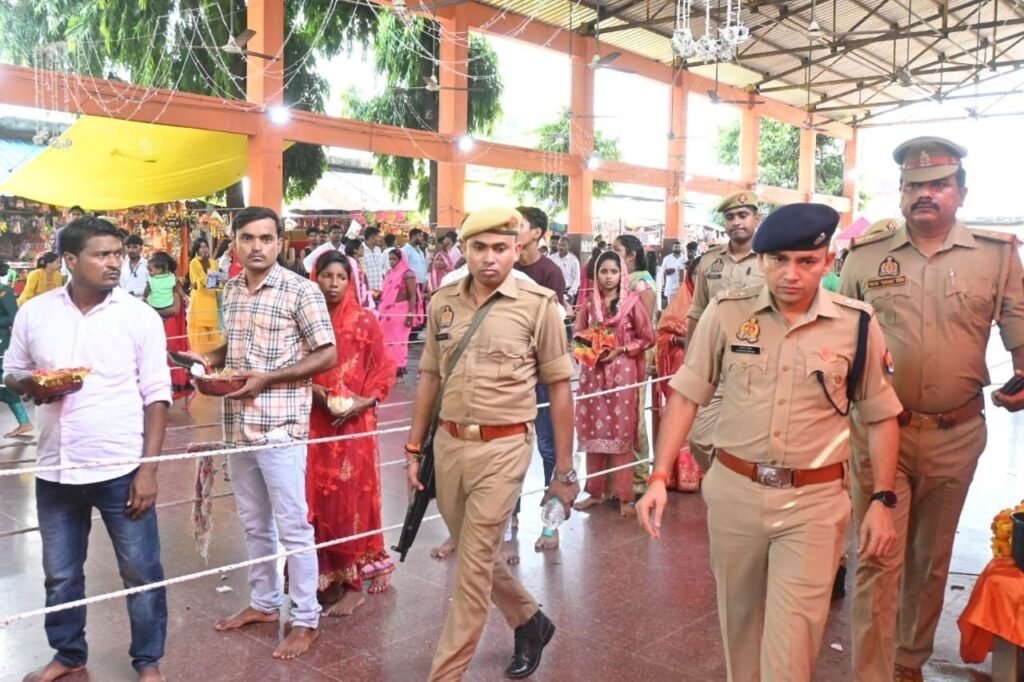 शारदीय नवरात्रि पर्व के अवसर पर पुलिस प्रशासन ने सुरक्षा व्यवस्था को लेकर पूरी तैयारी कर ली है। पुलिस अधीक्षक महराजगंज श्री सोमेंद्र मीना ने सोमवार को बृजमनगंज थाना क्षेत्र स्थित लेहड़ा देवी मंदिर और चौक थाना क्षेत्र के सोनाड़ी देवी मंदिर परिसर का दौरा कर सुरक्षा व्यवस्था का जायजा लिया। इस दौरान उन्होंने तैनात पुलिस बल को आवश्यक दिशा-निर्देश दिए और श्रद्धालुओं की सुरक्षा व यातायात व्यवस्था को सुचारु बनाए रखने के निर्देश दिए।