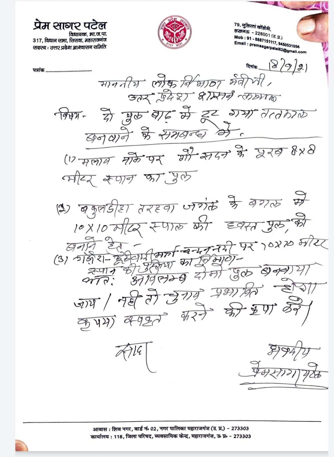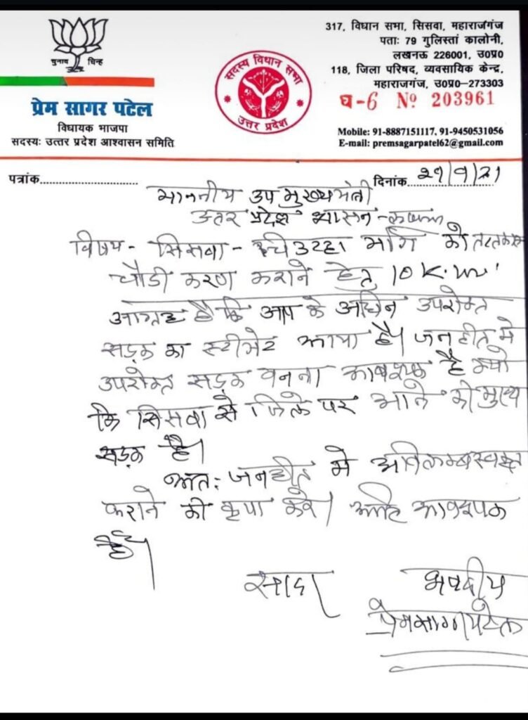 1. सिसवा- चिऊटहा मार्ग को तत्काल चौड़ीकरण हेतु।