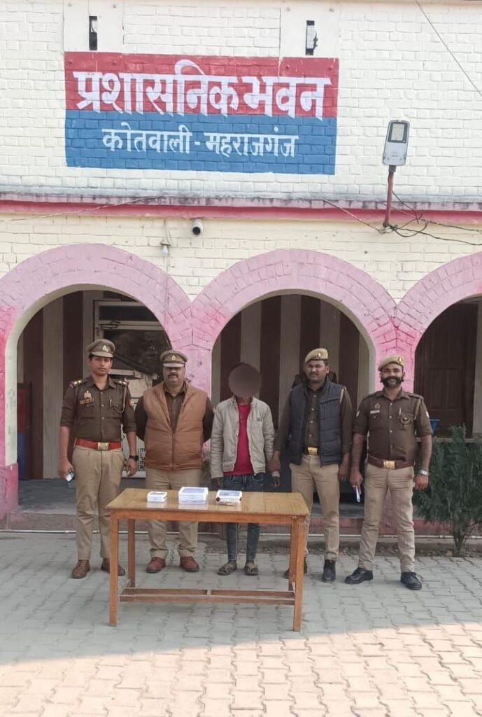 पुलिस अधीक्षक महराजगंज सोमेन्द्र मीना के निर्देश पर वांछित अभियुक्तों की गिरफ्तारी के लिए चलाए जा रहे अभियान के तहत अपर पुलिस अधीक्षक सिद्धार्थ के निर्देशन तथा क्षेत्राधिकारी जयप्रकाश त्रिपाठी के मार्गदर्शन में कोतवाली पुलिस ने मु0अ0सं0 85/2026 धारा 305(a)/331(4)/317(2) बीएनएसएस से संबंधित मामले में प्रकाश में आए अभियुक्त युसुफ अली पुत्र वकील, निवासी ग्राम करमहा थाना कोतवाली, उम्र करीब 21 वर्ष को गुरुवार तड़के करीब 2:16 बजे उसके गांव से गिरफ्तार कर लिया।