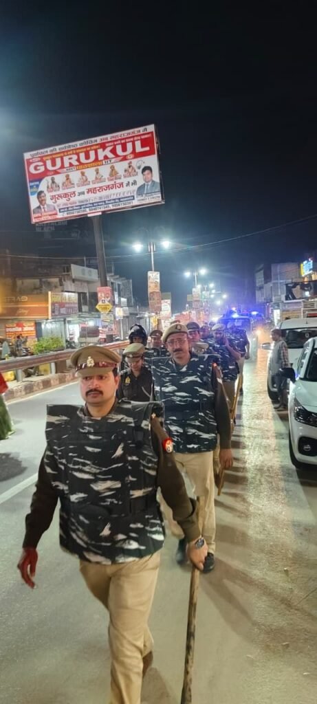 महराजगंज: आगामी होली पर्व को शांतिपूर्ण और सौहार्दपूर्ण वातावरण में संपन्न कराने के उद्देश्य से जनपद में सुरक्षा व्यवस्था को मजबूत किया गया है। इसी क्रम में अपर पुलिस अधीक्षक महराजगंज ने कोतवाली पुलिस बल के साथ नगर क्षेत्र में फ्लैग मार्च किया।