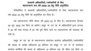 कैबिनेट मीटिंग के बाद सरकार के बयान में कहा गया है कि तबादला नीति सिर्फ साल 2022-23 के लिए प्रभावी है और इसके तहत 30 जून तक ट्रांसफर-पोस्टिंग किया जा सकता है।