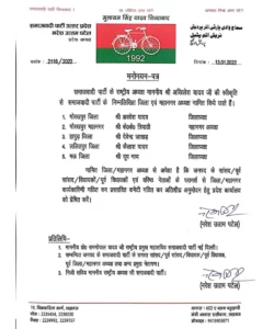 समाजवादी पार्टी मे गठबंधन के पहले उम्मीदवार का एलान हो गया है। गोरखपुर जिले का जिलाध्यक्ष अवधेश यादव, हापुड़ जिले का जिलाध्यक्ष देवेंद्र जाखड़, ललितपुर जिले का जिलाध्यक्ष कैलाश यादव और मऊ जिले का जिलाध्यक्ष दूध नाथ को बनाया गया है। वहीं, गोरखपुर महानगर का महानगर अध्यक्ष के के त्रिपाठी को बनाया गया है। ललितपुर जिला अध्यक्ष पर एक युवती ने दुष्कर्म का आरोप लगाया था इसलिए उन्हें हटा दिया गया।