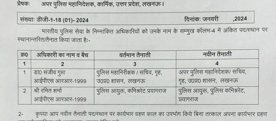 तबादला: लोकसभा चुनाव को देखते हुए योगी सरकार ने उत्तर प्रदेश में एक बार फिर बड़े पैमाने पर प्रशासनिक फेरबदल किये। योगी सरकार ने मंगलवार देर रात को 84 आईपीएस अधिकारियों को इधर से उधर कर दिया। इससे पहले भी प्रदेश सरकार ने सोमवार को 18 आईएएएस अधिकारियों का तबादला कर दिया था।